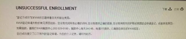 据目前掌握到的信息来看,EVUS登记失败一般会出现两种状态: