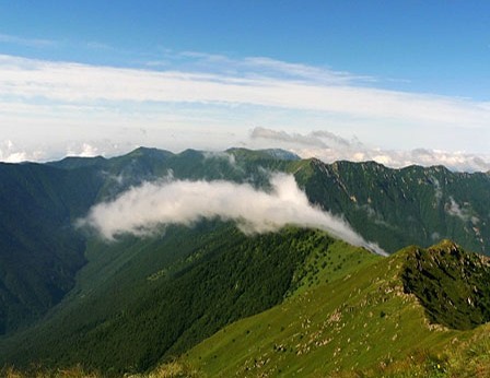 攀上东台后,太阳渐渐落山了。夕阳的余晖映照着远山的上部,显出淡淡的粉色,而山涧的底部已变成墨绿色甚至昏暗成灰黑色。晚上宿营小五台山,欣赏密密麻麻的满天星斗,和同伴们谈天说地,觉得平时的一切烦恼都抛在脑后了。虽然地面有些潮湿,不过想到和草丛中的蒲公英、盛开着的金莲花睡在一起,听到远处流水的声音,只觉得有些恍惚了。