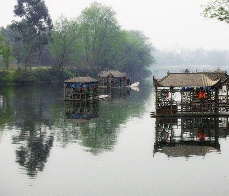 川西水乡泛舟水上