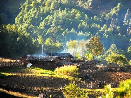 【导语】:利加咀是一座独守世外的美丽村落,质朴无华的木板楼看护着谷地中的庄稼。低矮的木栏杆勾画出迷宫般的甬道,房前屋后尽是百岁高龄的参天古树,这里住着的摩梭人仍是是母系社会。