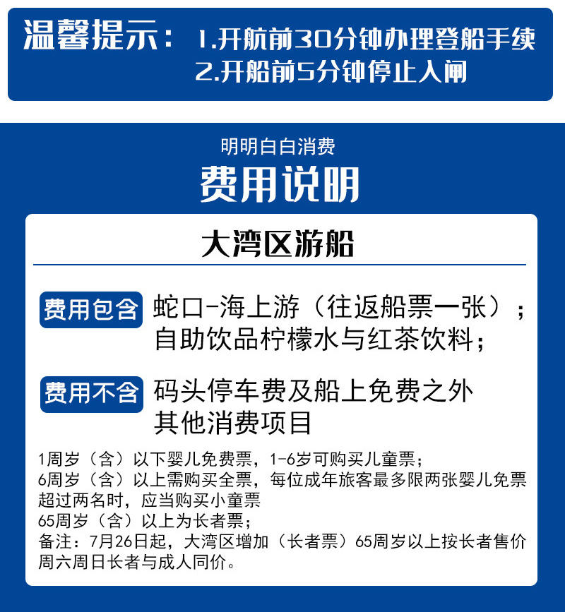 般票包含:深圳蛇口大湾区游轮体验成人票一张;
